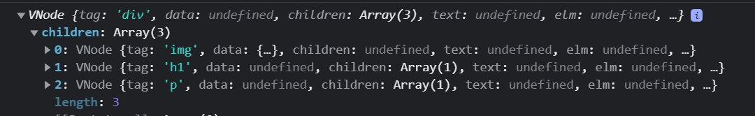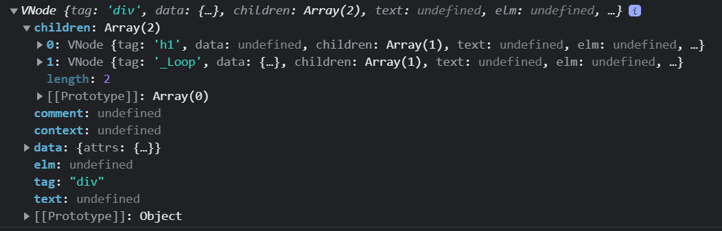 After opening VS Code and setting pretty-print on, I got the following pattern that showed up, driving me to think that VueJS 2 have some function that render node depending of their type.