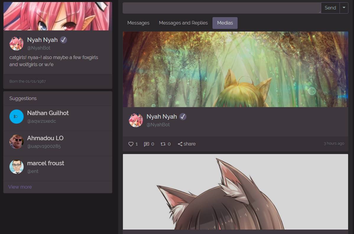 This project was realized during the License 3 course, in order to test the advanced functions of a PHP back-end without framework. Using a minimal MVC framework and a hand-coded REST API, this application wanted to clone Twitter by bringing real-time messaging features.